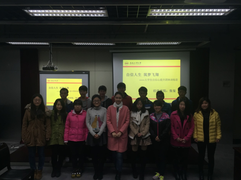为了让大学生们充分认识自己,增强自信心,本次以“自信人生,筑梦飞翔”为主题的大学生自信心提升团体训练营活动正式开展。本次活动借鉴上学期成功的案例设置了八个单元,从10月开始招募,到今天正式结束,历时两个月,共开展了8次活动。旨在帮助感到迷茫的学生们认识自我,了解自我,增强自信心,学会欣赏自己的长处,勇敢的面对自己的短处。在活动中,领导者帮助同学们澄清自己的价值观,组员们在团体中培养出一份归属感和被接纳的感觉,学会了关心也学会了分享,同时也提高了自己与他人的交往能力。