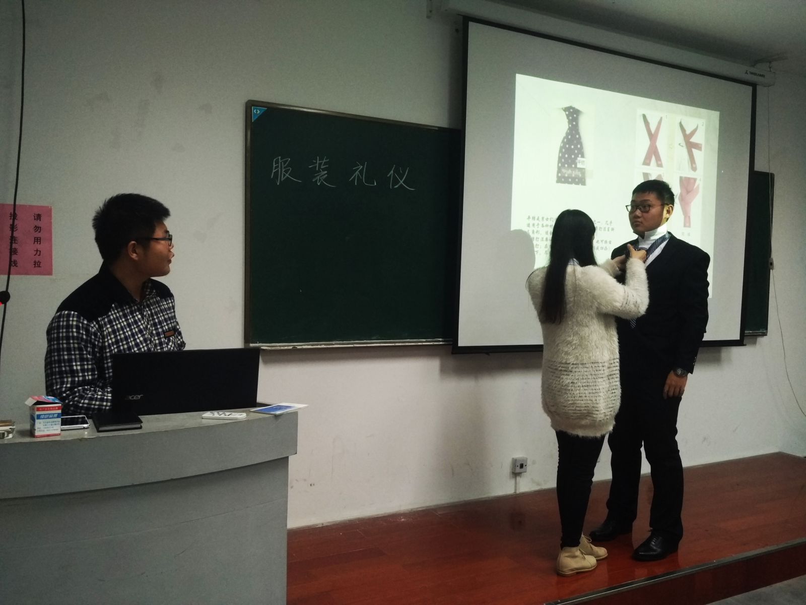 为提高大学生的礼仪修养,了解基本的礼仪原则,使得同学们在自我认知、内心素养及外在形象等方面, 从内到外获得全面提升,10月15日晚七点,yL23411永利官网登录学生会阳光心理中心在建艺馆121成功举办了“BBC礼仪培训——公关礼仪培训”的活动。