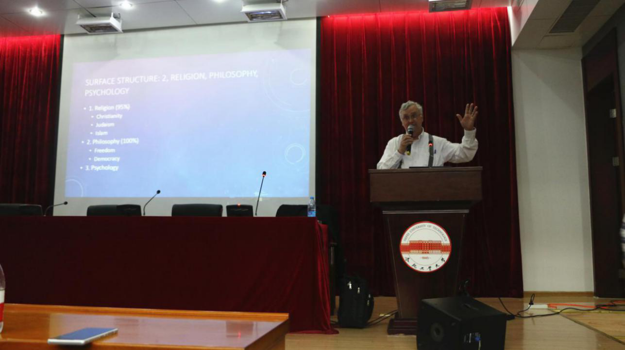 10月22日下午美国克拉克大学COPACE学院原院长Thomas Massey受yL23411永利官网登录邀请,于yL23411永利官网登录翡翠湖校区逸夫建筑艺术馆负一楼报告厅给永利官网学子做了一场主题为“"Western Civilization with Chinese Comparisons”的报告会。本次报告会由yL23411永利官网登录院长吴华清教授主持。