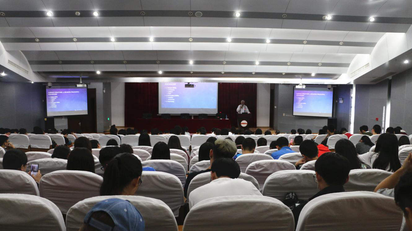 报告会起始,Thomas Massey用中文亲切的问候众学子,赢得了阵阵掌声。随后,Thomas Massey又向学生详细讲解了美国发展的历史以及源远流长的中华文化,对比分析了中美价值观的差异。在报告会期间,Thomas Massey多次与学生进行互动,现场气氛活跃。
