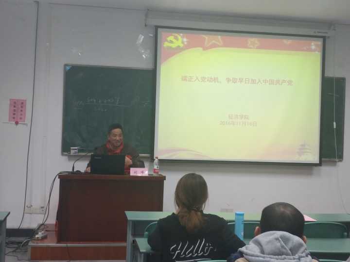 仪式结束后,全体学员进入第一次党课学习。由院党委刘峰书记授课,以“端正入党动机,以实际行动争取争取早日加入党组织”为主题。刘峰老师首先从心理学的角度为同学们解释了什么是动机,列举了当代大学生存在的追求功利型、虚荣型、从众随大流型三种消极思想以及主动要求入党型、共产主义信念型两种积极的思想,并指出共产党延续至今便是得益于思想的力量,当代的大学生应端正自己的思想,端正入党动机。刘峰老师简单阐述了理想和信念的概念,并指出党员应坚定信念,高度重视,增强自信,不能缺少精神上的钙,同时还更要发挥理论对事件的指导作用,要加强理论学习和实践锻炼,坚定理想信念。最后,刘峰老师进行了简短的总结,并祝大家端正动机,早日入党,用理想信念指导自己的未来。