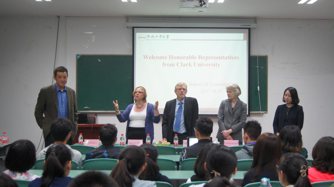 2017年4月7日晚七点半,美国克拉克大学代表与国际经济与贸易(中外合作)专业学生2017年度春季见面会于建艺馆121教室成功举办。