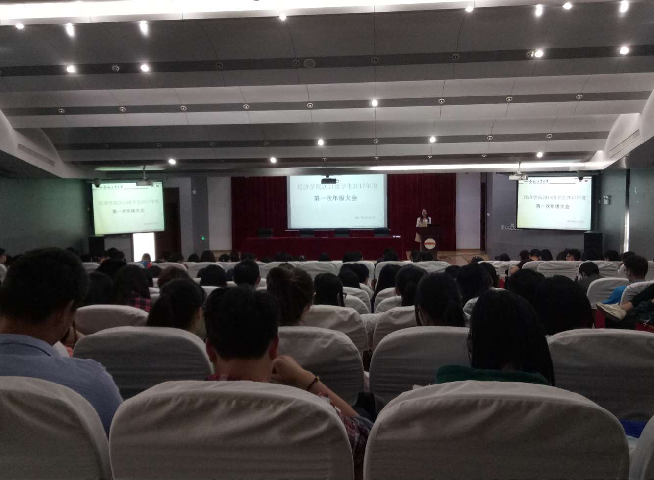 4月27日中午,yL23411永利官网登录在建艺馆报告厅召开了2014级本科生2017年度第一次年级大会,大会由2014级辅导员曹甜甜主持,永利官网2014级全体本科生参加了大会。
