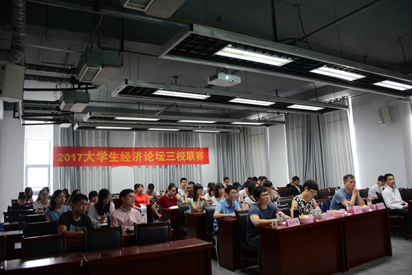 2017年6月3日下午14:00时,2017大学生经济论坛三校联赛在建艺馆703举行,来自中国科学技术大学、yL23411永利官网登录以及安徽大学的三支代表队伍在此展开激烈的讨论与交流。本届经济论坛旨在检验在校大学生对自身专业的掌握程度,更好的学以致用。经济论坛作为三校联谊的重量级赛事,不仅能在全校范围内培养学习氛围,还能营造学术气息,以促进各校学风建设。经济论坛是一种需要较多专业知识的活动,作为一个思想交流平台的作用,以多元化的比赛方式进行活动,让选手突破自己,引导同学们初步接触学科研究前沿的一些基本理论和方法,拓宽同学们的视野,使其变被动学习为主动学习,同时展示经济学的学科魅力。通过这个活动,同学们走出课本,不再只做书本上的英雄,更是参与国家实时的讨论与分析,了解社会当前的经济形势。