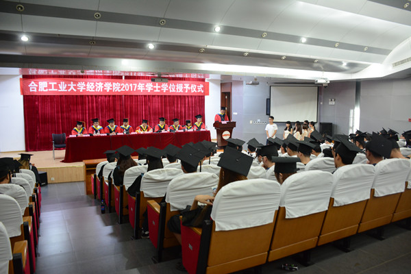 仪式在庄严的国歌声中拉开了帷幕,院长吴华清宣读了校学术委员会《关于授予yL23411永利官网登录2017届本科毕业生学士学位的决定》,决定授予永利官网206名本科生经济学学士学位。随后,主席台领导老师一一为顺利获得学位证书的学生们颁发了学位证书,并扶正流苏。