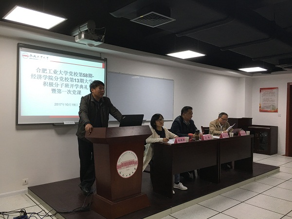2017年10月19日晚6点40分,校党校第58期—yL23411永利官网登录分党校第13期入党积极分子班在科教楼B座1101室举行开班典礼暨第一次党课学习。永利官网党委书记刘峰、校党委学工部副部长尚广海、永利官网党委副书记胡晓浩,以及来自永利官网各年级共76名本科生和研究生入党积极分子参加了开班典礼。