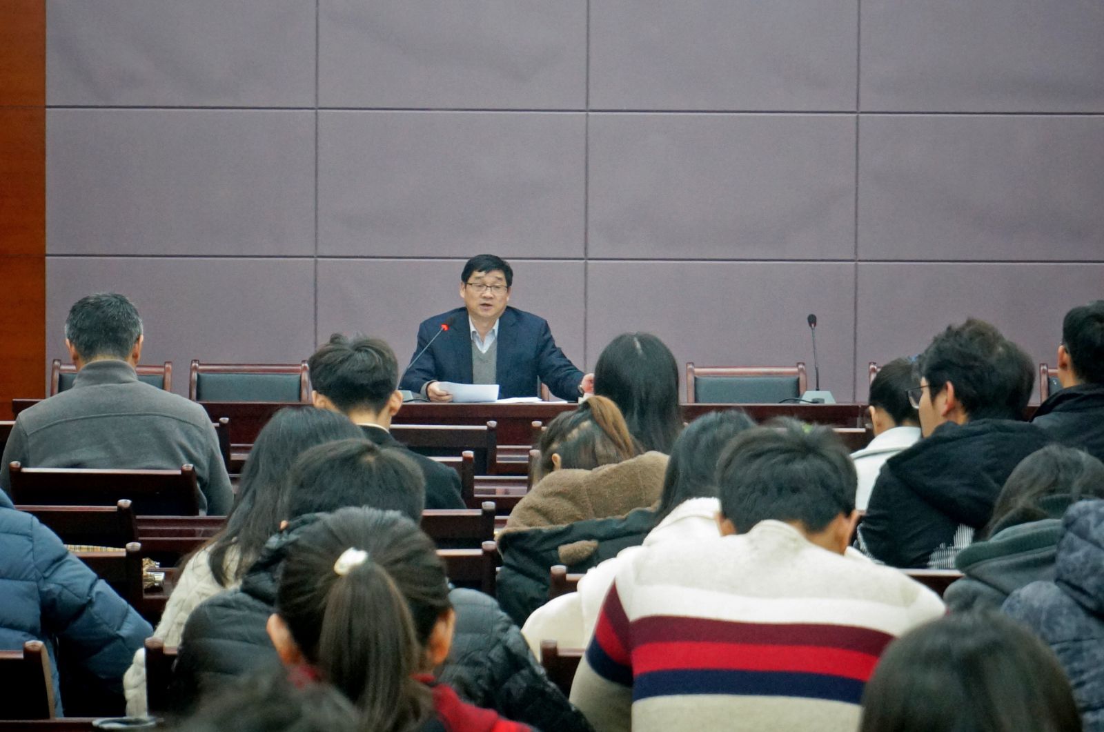 2017年11月29日下午两点钟,在yL23411永利官网登录翡翠湖校区科教楼A座第五会议室,永利官网朱卫东教授开展了一场十九大精神宣讲报告,题为“十九大精神宣讲——深化供给侧结构性改革”。yL23411永利官网登录金融工程系党支部全体教师以及学院2017级研究生到场聆听了本次报告会。
