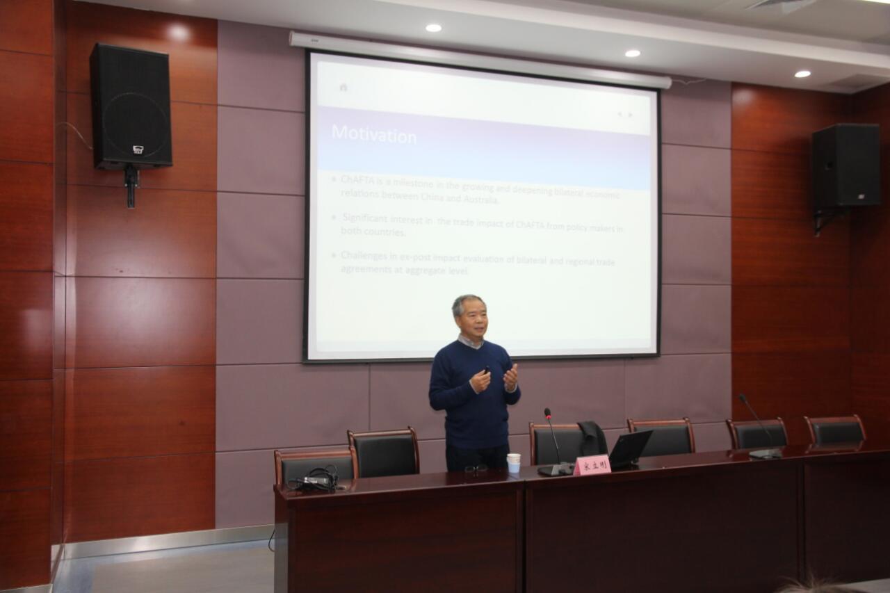 2017年12月1日,澳大利亚国立大学克劳福德公共政策学院教授、博士生导师、中国经济项目负责人宋立刚教授应邀来永利官网进行学术访问交流。当天上午8:40-10:30,宋立刚教授在yL23411永利官网登录翡翠湖校区科教楼A座第五会议室,以“澳大利亚-中国自由贸易协定对双边贸易影响的统计分析”为主题为全院师生做了一场精彩的学术报告。本次报告会由yL23411永利官网登录副院长张先锋教授主持,学院师生近**参加了此次报告会。