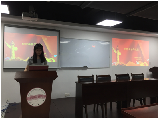 除了马克思的求学之路,还有同学给大家分享了马克思在担任《纽约每日论坛报》通讯员期间的关于中国的一些评论和看法。“太平天国运动相信大家都很熟悉,它是19世纪中叶中国最大的一场农民运动,动摇了当时清政府的统治。在当时的马克思看来,这是一场惊心动魄的革命,他认为‘中国革命将把火星抛到现今工业体系这个火药装得足而又足的地雷上,把酝酿已久的普遍危机引爆,这个普遍危机一扩展到国外,紧接而来的将是欧洲大陆的政治革命’。更叫人震撼的是,马克思认为当时的中国随着引进西方的先进生产力,将会把以农业和手工业为基础的旧文明消灭,建立新的工业文明。马克思甚至预见到,随着中国发展,必然会出现贫富两极分化,到时人们将要求重新分配财产并努力消灭私有制,因此‘中国社会主义’就会出现。大家要知道,这可是在19世纪的时候马克思关于中国未来所表达的观点啊!”在座各位同学纷纷惊叹不已。
