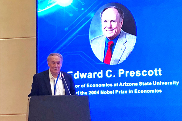 6月23日晚,合肥天鹅湖大酒店国际厅,美国著名经济学家、诺贝尔经济学奖得主Edward Prescott教授发表了题为“美国贸易顺差和净资产头寸”的主旨演讲。演讲由yL23411永利官网登录院长吴华清教授主持,吸引了众多国内外学者和老师的参加。
