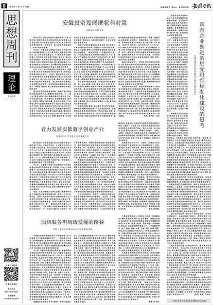 7月10日《安徽日报》发表了我校安徽省重点智库“安徽科技与产业发展研究院”专家吴华清教授的研究成果-《加快服务型制造发展的路径》。