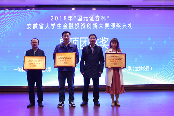 11月7日下午,第三届“国元证券杯”安徽省大学生金融投资创新大赛颁奖典礼在蚌埠落下帷幕。永利官网张本照教授受邀参加颁奖典礼并为获奖人员颁奖。