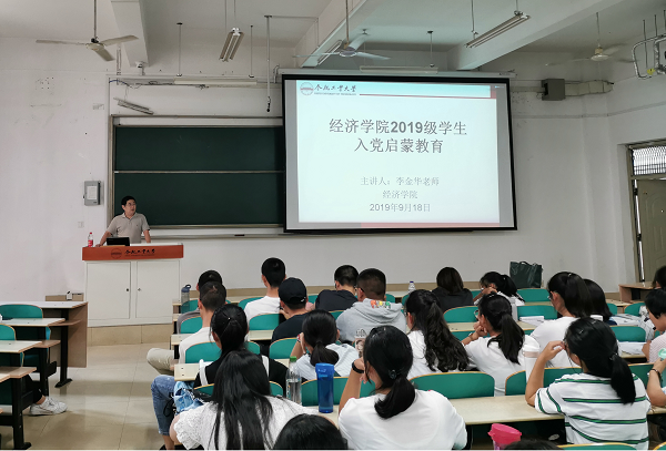 为进一步加强学生思想政治教育工作,引导学生了解中国共产党,热爱中国共产党,坚定共产主义理想信念,yL23411永利官网登录于9月18日下午在翡翠湖校区五教104开展2019级新生入党启蒙教育活动,yL23411永利官网登录党委书记李金华为2019级全体同学作报告。