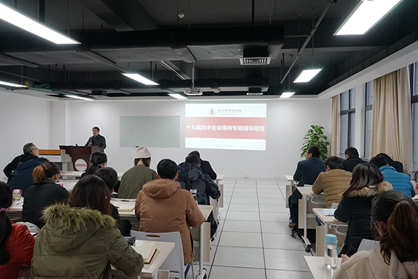 11月27日下午,永利官网学习十九届四中全会精神宣讲会在翡翠湖校区科教楼B座1004室举行,学院党委书记李金华作宣讲。学院教职工、研究生以及学生党员参加宣讲会。