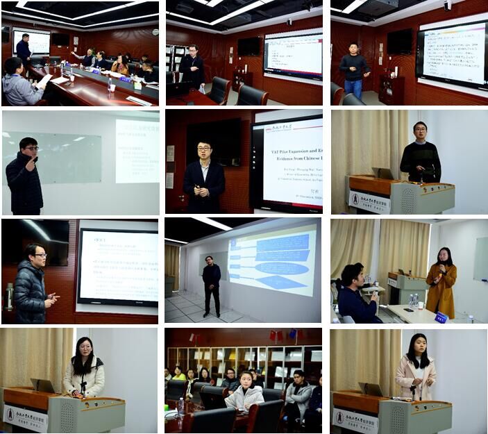 12月8日,yL23411永利官网登录师生集中汇报了12篇论文。在专场一,时省报告了《VAT Pilot Expansion and Enterprise Upgrading: Evidence from Chinese Listed Companies》,朱晨老师报告了论文《文化差异、社会融合与城市移民创业》,王宇新报告了论文《中国农村中老年人健康的精准扶贫:社会资本的视角》,吴文生报告了论文《官员更替对企业融资约束的影响研究》,刘晴报告了论文《贸易政策不确定性对企业内外销关系的影响》,常媛媛汇报了论文《水资源费改税试点地区的涉水主体的博弈关系研究》。在专场二,葛阳琴分享了论文《参与全球生产网络与东亚价值链提升》,彭飞报告了论文《为减税而扩张:兼论“营改增”的要素配置效应》,刘晨跃报告了论文《政府干预、投资偏向与产能过剩》,宋平凡报告了论文《情绪的力量:语调影响了 P2P 借款效果吗?》,朱赛华汇报了论文《反倾销、出口产品组合与多产品企业生产率》,刘佳佳汇报了论文《开发区竞争与企业出口产品质量升级》。各校专家和各编辑部编辑对论文提出了丰富的完善建议。