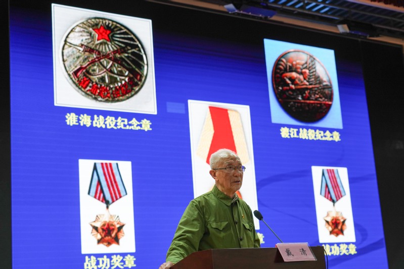 4月11日上午,学院党史学习教育暨革命传统教育报告会在翡翠湖校区科教楼A座报告厅举行,学院党委邀请了革命老战士、优秀共产党员、安徽好人、中国好人、“全国离退休干部先进个人”90岁高龄的戴清老人做题为“激情的岁月,殷切的希望”主题报告。学院党委书记张炳武主持报告会,党委副书记、纪委书记谢晶晶,各党支部书记,学生党员、发展对象、入党积极分子以及学院党校、团校学员300余人参加报告会。