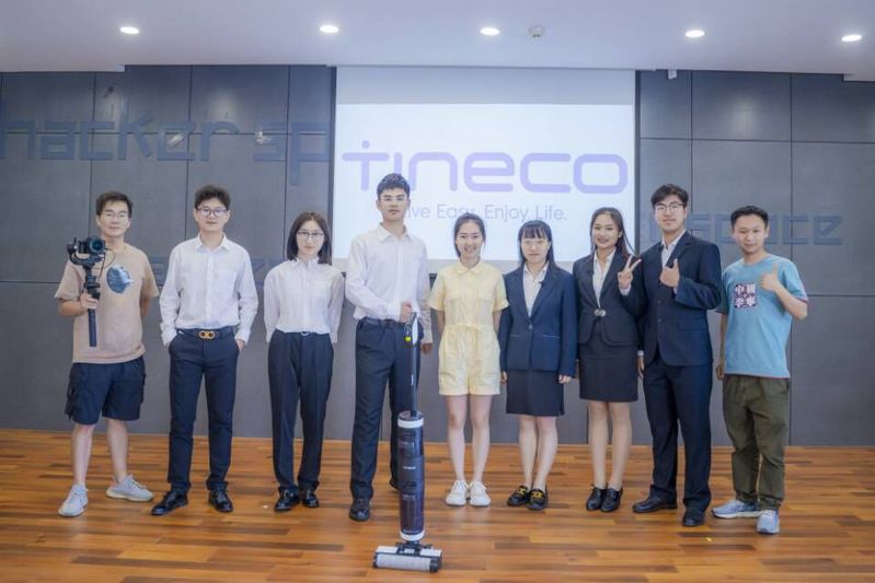 省赛环节可以选择新产品发布会、网络直播和大数据运维分析三个赛道的其中之一。Mindtemple队选择的是新产品发布会赛道,以不超过八分钟的全英文演说模拟一款产品的国际发布会。由于疫情原因,参赛队伍无法进行现场实地展示,而是通过拍摄视频展示发布会的全过程。Mindtemple队的成员们结合防控疫情需要、垃圾分类推广等现实背景,选择了一款智能洗地机作为最终的推销产品。团队成员通过大量搜集中英文视频文字材料,广泛发掘产品市场需求大、便携性强、噪音小、操作方便、清洁力度大、应用场景多、售后服务及时等优势和创新点,经过大量的实地磨合练习,运用幻灯片演讲、情景再现、现场对比、采访配合等多种展示手段,全方位、多角度、立体化模拟了国际发布会的现场情况。队员们在发布会视频中,表现出大方的台风气质、流利简洁的英语表达、以及灵活的走位衔接,向评委们展示了以“live easy, enjoy live”为中心的国际营销策略,充分展现出“厚德、笃学、崇实、尚新”的精神风貌。