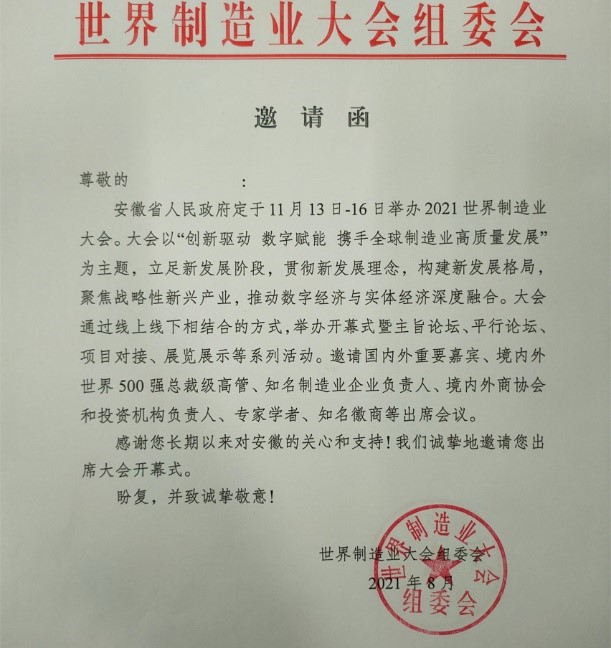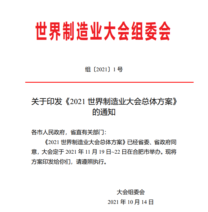 2021年世界制造业大会是经国务院批准,由工业和信息化部、科技部、商务部、安徽省人民政府等共同主办的大会,是安徽省对外开放的一张靓丽名片、国际交流合作的重要平台。2019年,习近平总书记在致大会贺词中指出,当前,全球制造业正经历深刻变革,各国需要加强合作、互学互鉴,共同把握新一轮科技和产业革命机遇,增强制造业技术创新能力,推动制造业质量变革、效率变革、动力变革。为全面贯彻党的十九大和十九届二中、三中、四中、五中、六中全会精神,认真贯彻落实习近平总书记重要讲话指示精神,加快安徽改革开放新高地建设,构筑“双招双引”务实高效合作对接平台,特定于2021年11月20-21日在安徽合肥举行“现代化都市圈与先进制造业论坛”。