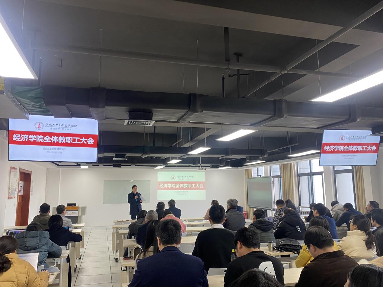 院长洪进传达了学校寒假工作研讨会召开情况和会议精神,并从一流本科专业建设、新文科经济类人才培养成效、师资队伍建设、教研成果、学科建设、学生工作、行政服务等方面,全面回顾了2021年学院建设工作亮点和发展成果,深刻分析了学院在学科建设、专业建设、师资建设、科学研究等方面存在的发展瓶颈,并提出“塑造卓越理念,整合资源合力,继续深度突破”的基本对策。洪进强调,2022年要持续做好“党建与思政工作提升工程”、“育人质量提升工程”、“国际合作质量提升工程”、“学科团队和人才建设工程”、“高水平科研提升工程”、“红色经济史建设工程“和“实践育人工程”,并对新学期重点工作进行布置。