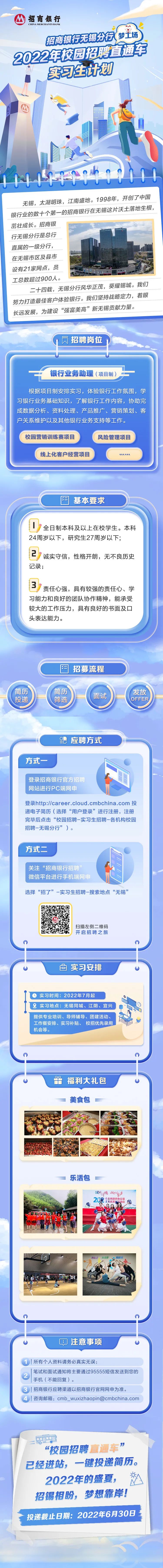 【实习信息】招商银行无锡分行2022年暑期实习生招聘
