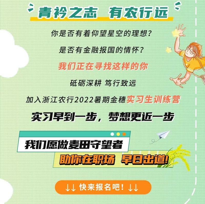 【实习信息】振兴有农 笃行致远 | 浙江农行金穗实习生招聘
