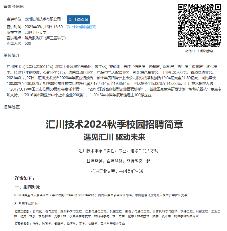 【招聘信息】苏州汇川技术有限公司