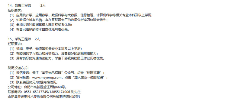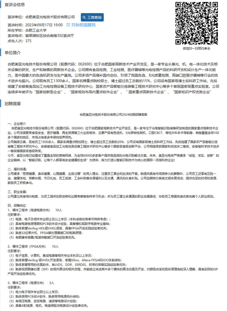 【招聘信息】合肥美亚光电技术股份有限公司2024校园招聘简章