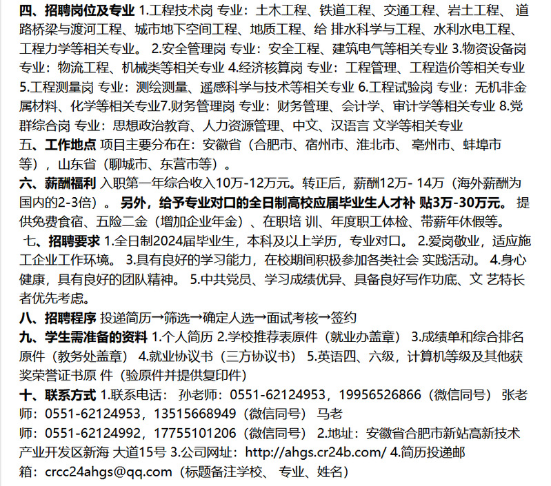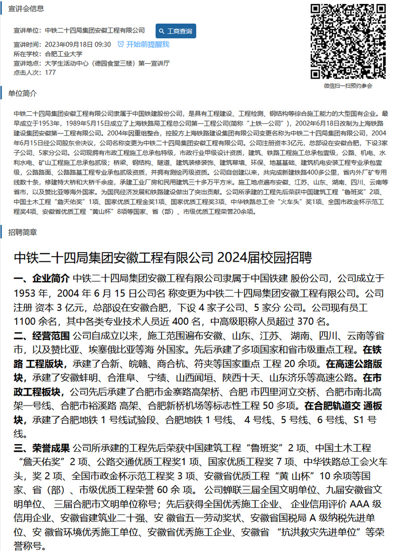 【招聘信息】中铁二十四局集团安徽工程有限公司2024届校园招聘