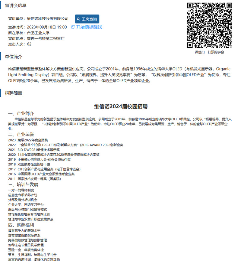 【招聘信息】 维信诺科技股份有限公司
