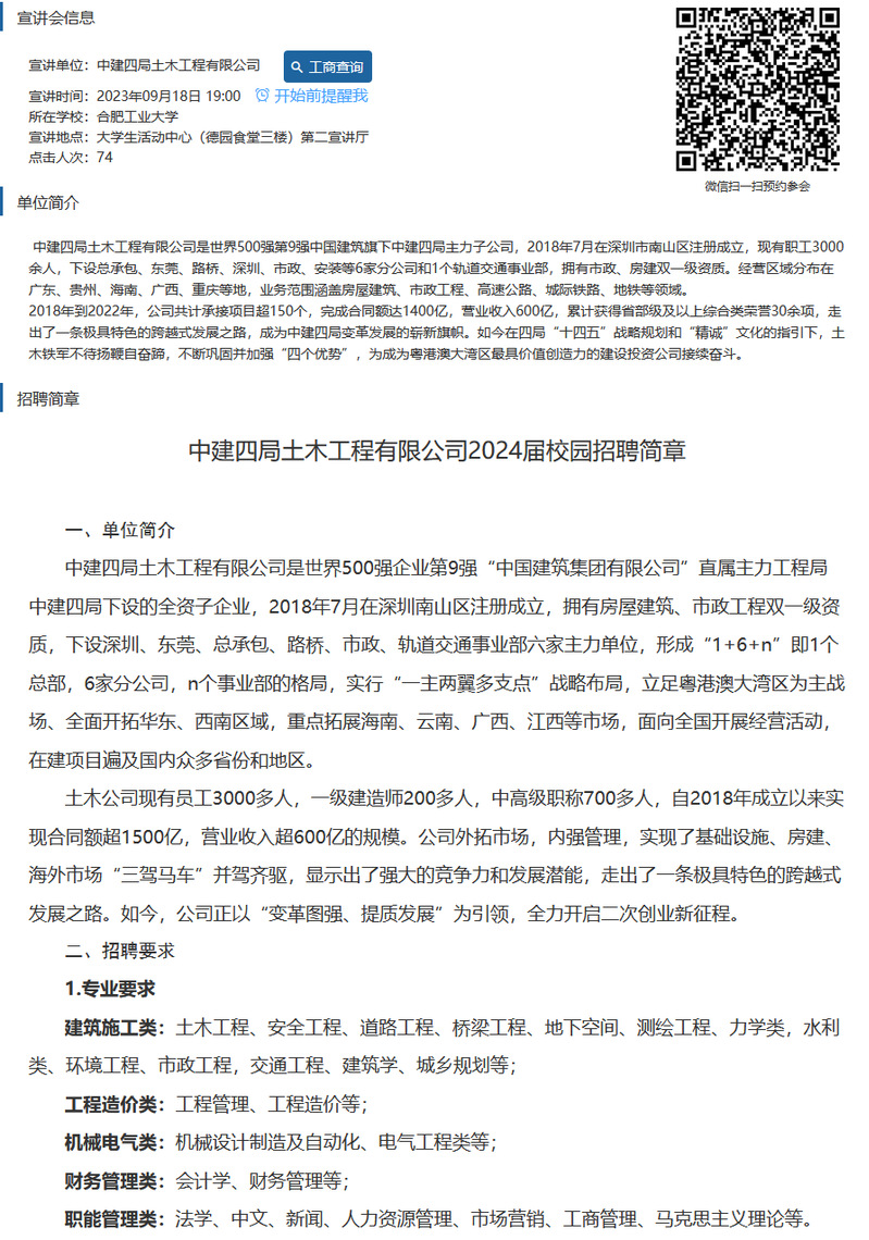 【招聘信息】中建四局土木工程有限公司