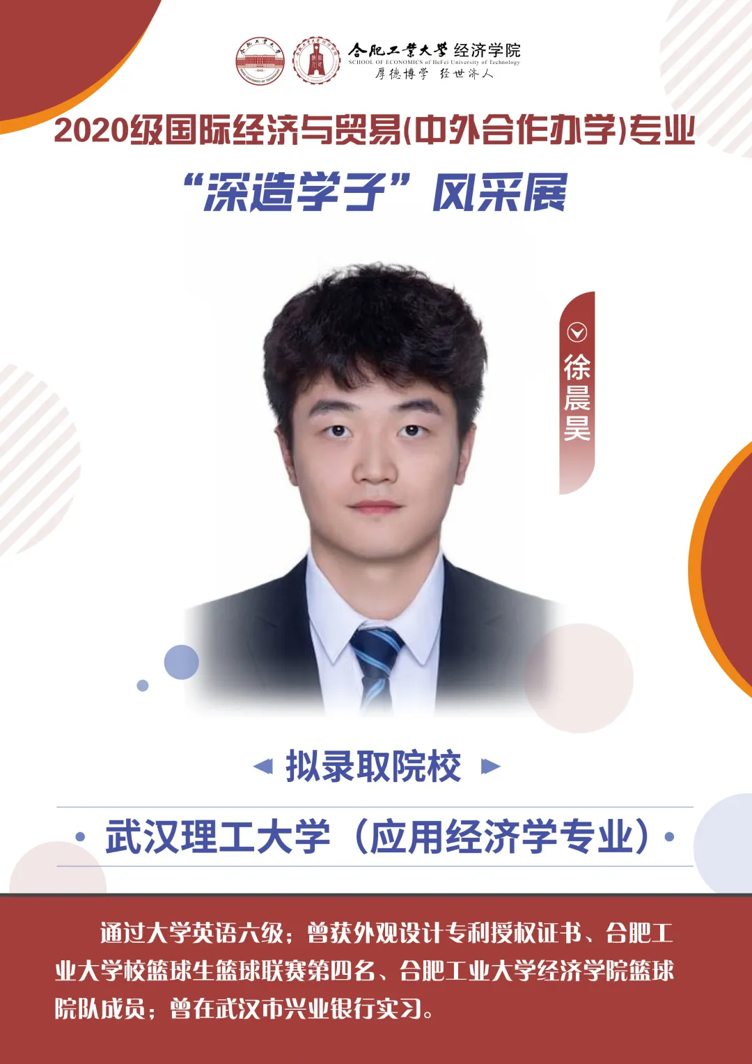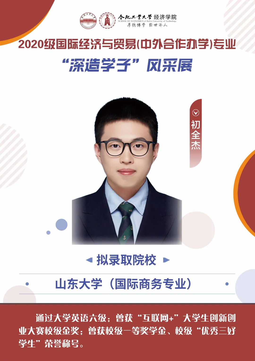yL23411永利官网登录国际经济与贸易(中外合作办学)专业是国家级一流本科专业建设点。本专业注重培养“强语言、精专业、通规则、能跨界”的高级复合型经贸人才。项目办学以来,人才培养成果呈现出“就业率高、就业单位质量高、升学率高、名校深造比率高、创新创业能力高、英语水平高、国际胜任力人才培养突破”的“六高一突破”显著特征。下面让我们一览国内深造学子的风采吧!