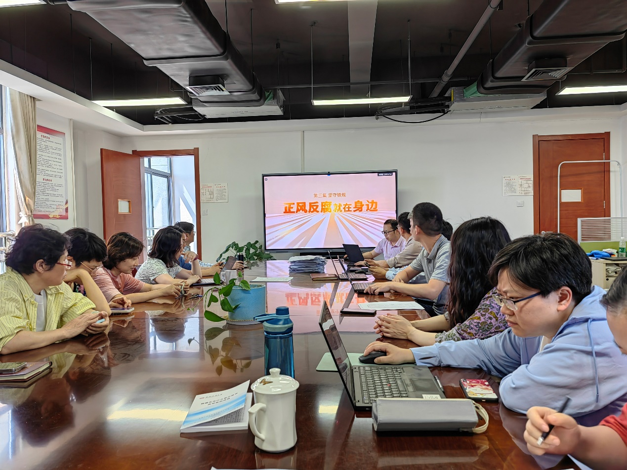 支部书记周华东首先强调了党纪学习教育和师德师风建设的重要性和紧迫性,向全体教师通报了近期教育部公开曝光违反教师职业行为十项准则的部分典型案例,希望大家引以为戒,并从严要求自己,践行“学高为师,身正为范”准则。随后,全体教师集体观看了中央纪委国家监委宣传部、中央广播电视总台联合制作的电视专题片《正风反腐就在身边》。老师们纷纷表示要引以为戒,时刻保持清醒头脑,自觉筑牢党纪法规和思想道德防线。